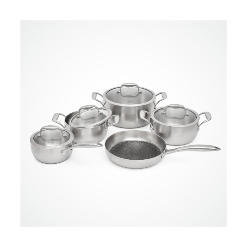 - Bộ nồi inox 9 món cao cấp (3 nồi, 1 quánh, 4 nắp, 1 chảo)